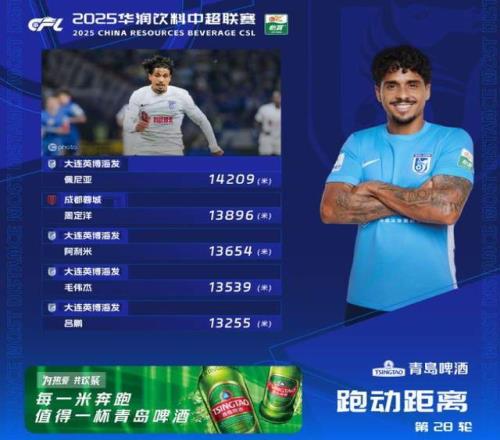 中超真正的铁人来了。在上轮中超联赛中,上海申花主场2比2被升班马大连英博逼平,然而,更让人惊讶的是,最新的中超官方跑动榜中,大连英博有4人上榜前5名,第1名的大连英博外援佩尼亚更是跑动距离达到14209米,打破近4年来的中超单场跑动纪录!