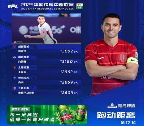 要知道,本赛季中超28轮联赛下来,大部分跑动榜第一名大多都没有超过1.3万米,而本赛季此前单场跑动距离最高纪录还要追溯到第17轮,当时成都蓉城的队长周定洋跑动13892米。这次,佩尼亚也是本赛季中超第一位跑动距离超过1.4万米的球员!