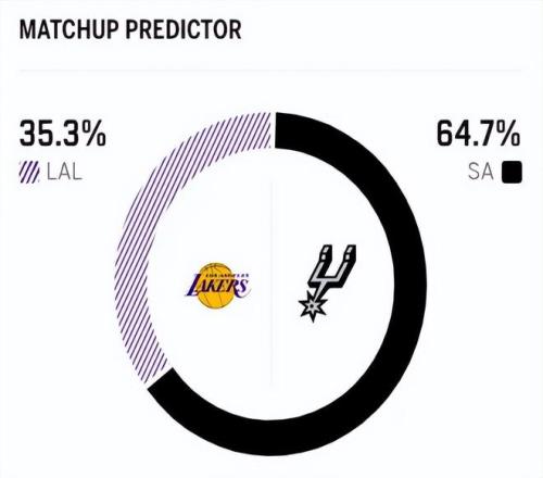 赛前,美媒ESPN对本场比赛进行了胜率预测,马刺队胜率高达64.7%,湖人队胜率则仅有35.3% ,差距非常大。