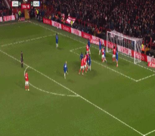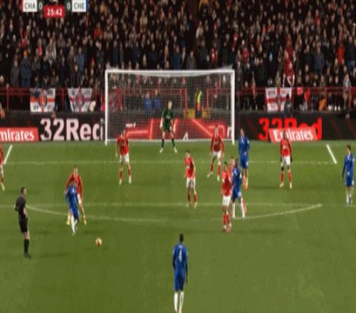 第45+5分钟,哈托禁区左路凌空爆射破门,切尔西1-0查尔顿