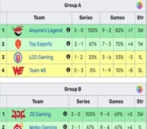 LOL赛事官推:已经有四支队伍拿到了八强的门票