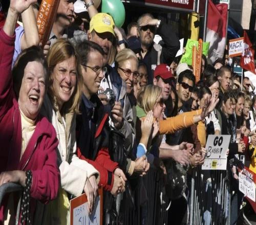 Letter from a Marathon DropoutBy Celeste Ballard 一张观众为马拉松跑者加油的照片。摄影:PG/MAGNUM终于到